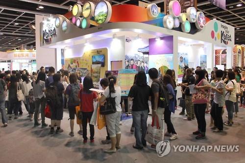 △ (홍콩=연합뉴스) 최현석 특파원 = 14일 홍콩국제관광박람회가 열리는 홍콩섬 컨벤션전시센터 내 한국홍보관은 한국 내 메르스 확산에 따른 우려에도 한국 여행 계획을 가진 홍콩인과 중국인들로 인산인해를 이뤘다.2015.6.14