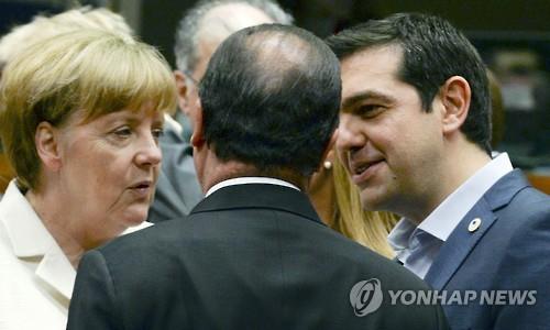 | △ 그리스 채무상환 문제를 협의하는 앙겔라 메르켈 독일 총리(왼쪽)와 알렉시스 치프라스 그리스 총리(오른쪽) |
