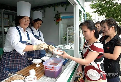 평양 거리에 팥빙수 매장 인기…"더울 땐 빙수가 최고"