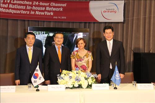 유엔본부를 대표해 계약식에 참석한 크리스티나 가약 공보담당 사무차장은 "아리랑 TV를 통해 유엔의 메시지를 확산시킬 수 있게 됐다"며 환영했다.