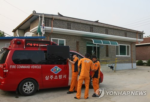 △ 마을회관 소방 출동 (상주=연합뉴스) 김선형 기자 = 14일 오후 경북 상주시 금계1리 마을회관에 소방대원들이 나와있다. 마을회관에선 전날 남은 음료수를 나눠 마신 할머니 6명이 쓰러지는 사고가 발생했다. 2015.7.14 sunhyung@yna.co.kr