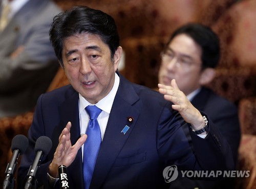 | △ 15일 국회 안보법안 특위에서 발언하는 아베 총리(AP.연합뉴스) |