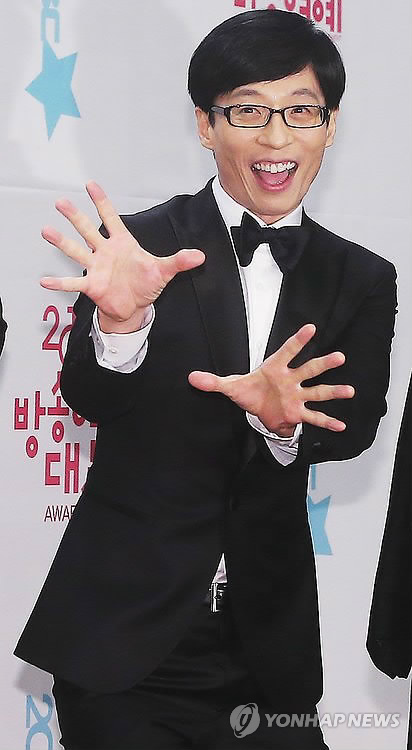 △ 포즈 취하는 유재석 (서울=연합뉴스) 홍기원 기자 = 개그맨 유재석이 29일 오후 서울 마포구 상암동 MBC 미디어센터에서 열린 '2014 MBC 방송연예대상'시상식에서 포즈를 취하고 있다. 2014.12.29 xanadu@yna.co.kr