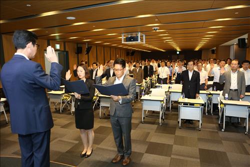 서약식에는 임직원을 비롯한 전 직원이 자발적으로 참여해 '윤리경영 실천서약서'에 서명하고 깨끗하고 투명한 공사를 만드는 데 앞장설 것을 다짐했다.