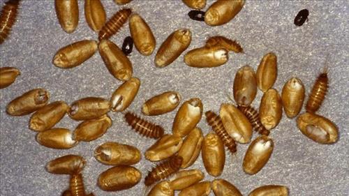 △ 카프라 비틀 유충, 성충, 표피 (미 농무부 자료사진)