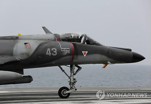 | △ 프랑스 해군 항공모함 샤를 드골의 함재기가 지난 3월18일(현지시간) 이라크와 시리아에서 세력을 펼치고 있는 수니파 극단주의 무장세력 '이슬람국가'(IS)에 대한 공습 임무를 수행한 뒤 걸프만에 머물고 있는 모함 칼빈슨에 착륙하고 있다. marshal@yna.co.kr |
