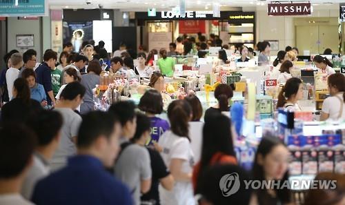 △ 지난 12일 서울 중구 롯데면세점이 쇼핑객들로 붐비는 모습(연합뉴스.자료사진)