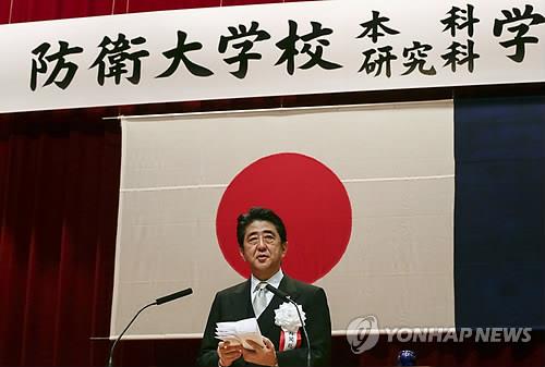 △ 일본 방위대 졸업식에 참석한 아베 신조 총리(EPA=연합뉴스 자료사진)