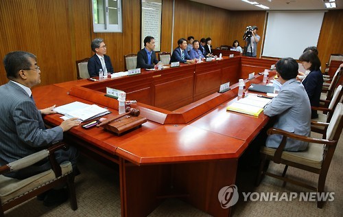 | △ 서울외고 지정취소 추가 청문회 열려 (서울=연합뉴스) 황광모 기자 = 21일 오전 서울시 교육청 내 학교보건원 회의실에서 열린 서울외국어고등학교에 대한 추가 청문회에서 참석자들이 회의의 시작을 기다리고 있다. |