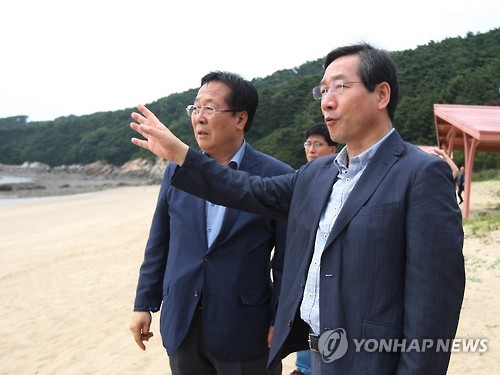 | △ 소이작도 해변 둘러보는 유정복시장 (인천=연합뉴스) 최은지 기자 = 유정복 인천시장이 21일 오후 인천시 옹진군 자월면 소이작도 작은풀안해변을 둘러보고 있다. 유 시장은 섬 관광화 활성화를 위한 '섬 프로젝트'의 일환으로 이날 소이작도를 비롯한 섬 4곳을 잇따라 방문했다. 2015.7.21 chamse@yna.co.kr |