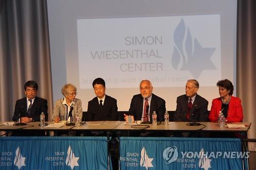 △ (로스앤젤레스=연합뉴스) 김종우 특파원 = 일본 대기업 미쓰비시(三菱) 머티리얼이 19일(현지시간) 제2차 세계대전 당시 강제노동에 징용된 미군 포로들에게 공식 사과했다. 기무라 히카루(木村光) 미쓰비시 머티리얼 상무를 비롯한 회사 대표단은 이날 오후 로스앤젤레스(LA) 시내에 위치한 미국 유대인 인권단체 시몬 비젠탈 센터에서 징용 피해자인 제임스 머피(94) 씨를 만나 머리를 숙였다. 2015.7.20