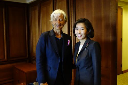 △ 크리스틴 라가르드 국제통화기금(IMF) 위원장(왼쪽)과 만난 나경원 국회 외교통일위원장.