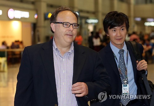 | △ 시드니 사일러 美국무부 북핵특사 입국 (영종도=연합뉴스) 신준희 기자 = 북핵 6자회담 미국측 차석대표인 시드니 사일러 국무부 북핵 특사가 26일 오후 영종도 인천국제공항을 통해 입국하고 있다. 사일러 특사는 27일께 우리측 6자회담 라인인 황준국 외교부 한반도평화교섭본부장과 김 건 북핵외교기획단장 등을 만난 뒤 중국, 일본을 잇따라 방문할 예정이다. 2015.7.26 hama@yna.co.kr |