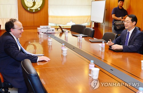 △ 한·미 북핵 6자회담 차석대표 면담 (서울=연합뉴스) 이정훈 기자 = 김건 외교부 북핵외교기획단장과 시드니 사일러 미 국무부 북핵 특사가 27일 오후 서울 종로구 도렴동 외교부에서 면담하고 있다. uwg806@yna.co.kr