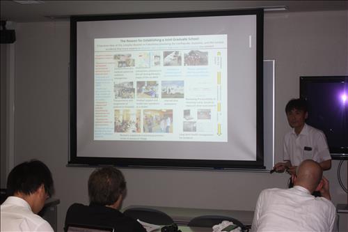 △ 나가사키대학 의학부(옛 나가사키 의대)의 다카무라 노보루(47·高村昇) 교수가 27일 기자들과 만난 자리에서 그간의 피폭 의료 관련 연구 성과를 소개하는 모습.(연합뉴스)
