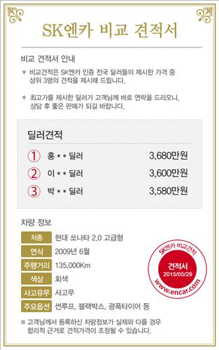 SK엔카닷컴은 누구나 믿고 이용할 수 있도록 검증 과정을 거쳐 가격 경쟁에 참여하는 중고차 딜러를 선정했다. 최근 5년간의 거래내용, 허위매물 등록 여부, 거래금액 지급 준수 여부, 소비자 후기 및 평점, 거래 횟수 및 규모, 주요 취급 차종 등을 고려해 딜러를 정했다는 것이다.