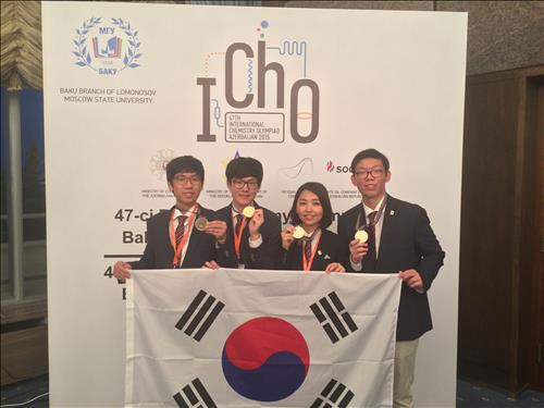 미래창조과학부는 20일부터 10일간 아제르바이잔 바쿠에서 열린 '제47회 국제화학올림피아드'에서 한국이 금메달 4개를 수상하며 중국, 대만과 함께 공동 1위를 차지했다고 29일 밝혔다.
