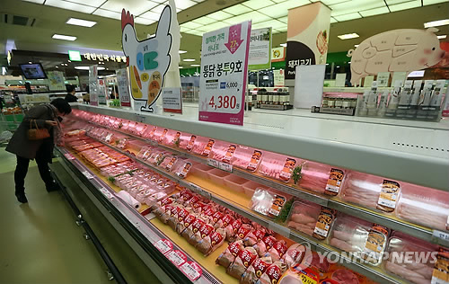 29일 기준 닭고기 평균 소매가격은 평년(5천769원)과 비교하면 13.8% 낮다.