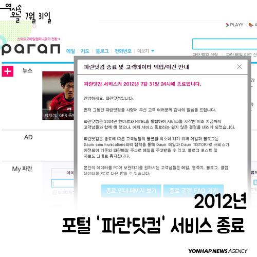 (서울=연합뉴스) 2012년 7월31일 한 포털 사이트가 문을 닫았다. 페이지뷰 점유율 1% 안팎. 점유율 수십 %대인 네이버나 다음과 비교하기 어려운 마이너 포털이었지만 많은 이들이 탄식했다. 이 사이트가 한국 PC통신의 대명사인 하이텔(HITEL)의 적통이던 '파란닷컴'(www.paran.com)이었기 때문이다. PC 통신의 대표 명맥이 역사 뒤편으로 사라진 순간이다.
