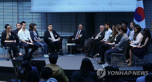 토론자로는 서울대와 베를린 자유대 소속 대학생 16명과 탈북 대학생 2명 등 18명이 나섰고, 서울에서 유라시아 친선특급을 타고 베를린까지 1만4천400㎞를 달려온 참가단 150여명도 자리를 함께 했다.
