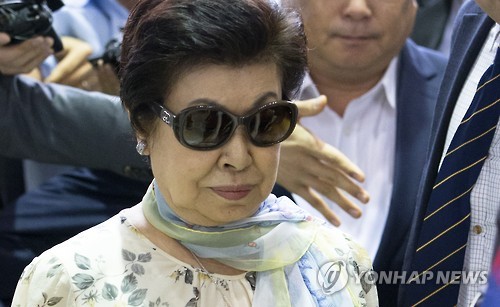 △ 시게미쓰 하쓰코, 출국 (서울=연합뉴스) 윤동진 기자 = 신동빈 롯데그룹 회장의 모친인 시게미쓰 하쓰코씨가 1일 오후 서울 강서구 김포공항을 통해 출국하고 있다.