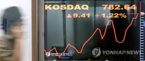| △ 지난 달 20일 780선 넘어선 코스닥 (연합뉴스 자료사진) |