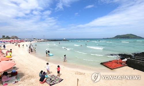 에메랄드빛 해변을 자랑하는 제주도에서는 천연 노천탕이 숨은 피서지로 인기를 끌고 있다.