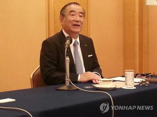 △ 한국 언론과 회견하는 쓰쿠다 다카유키(佃孝之·72) 일본 롯데홀딩스 대표이사 사장