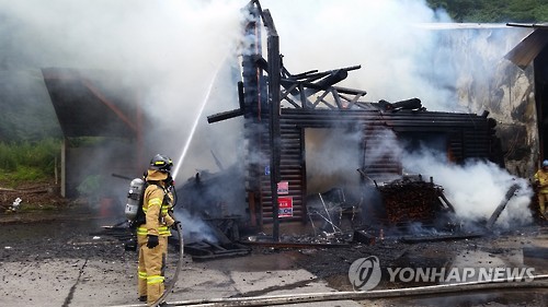 (평창=연합뉴스) 박영서 기자 = 4일 낮 12시 46분께 강원 평창군 평창읍의 한 제재소 내 직원 숙소에서 불이 났다.