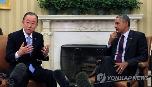 오바마 대통령은 이날 백악관 집무실에서 회담을 마친 뒤 공동기자회견에서 "다른 나라들도 기후변화에 맞서 싸울 수 있도록 반 총장이 촉구해줄 것을 강하게 요청했다"고 밝혔다.