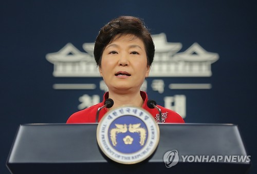 △ 박 대통령, 대국민 담화 발표 (서울=연합뉴스) 이정훈 기자 = 박근혜 대통령이 6일 오전 청와대 춘추관 브리핑룸에서 대국민 담화를 발표하고 있다.
