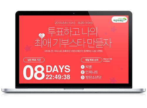 이달 20일까지 네이트가 제공하는 '인기채널 Top 10' 후보 중 이용자가 좋아하는 스타에게 투표하고 자신의 사회관계망서비스(SNS)에 인증하면 많은 표를 받은 스타의 이름으로 기부된다.