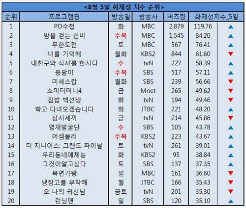 2위인 MBC 수목극 '밤을 걷는 선비'의 화제성지수 84.20보다 35포인트 이상 높게 나타났다.