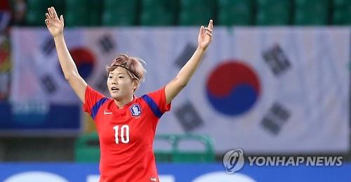 | △ 일본전에서 역전골을 넣고 환호하는 전가을.<<연합뉴스 자료사진>> |