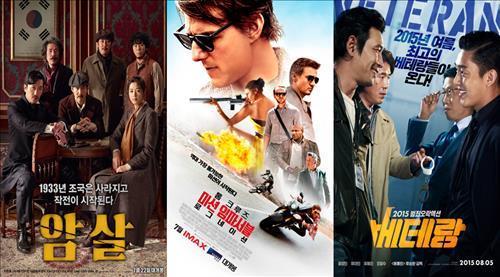 그러나 '베테랑'(감독 류승완)이 개봉해 정상에 오른 지난 5일부터는 '암살'이 '미션 임파서블'을 3위로 내려보내고 2위 자리를 유지하고 있다.