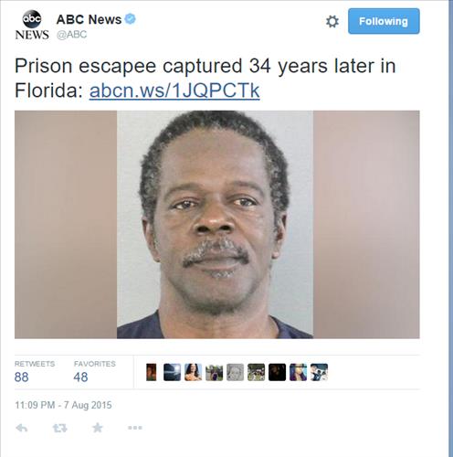 환갑 맞은 미국 죄수, 탈옥 34년 만에 붙잡혀