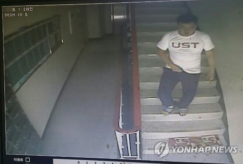 △ 옷 갈아입은 '도주범 김선용' (대전=연합뉴스) 지난 9일 치료감호 수감 중 대전의 한 병원에서 입원 치료를 받다가 도주한 특수강간범 김선용이 환자복을 버리고 평상복으로 갈아입은 장면이 찍힌 폐쇄회로(CC)TV 영상 캡처 사진. (대전지방경찰청 제공)