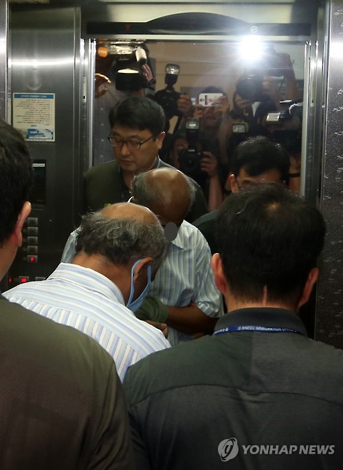 △ 법원 들어서는 피고인 (대구=연합뉴스) 김준범 기자 = 17년 전 대구에서 발생한 '여대생 사망 사건'의 범인으로 지목된 스리랑카인 K(49)씨가 항소심 선고공판 출석을 위해 11일 오전 대구고등법원으로 들어서고 있다. 2015.8.11 psykims@yna.co.kr