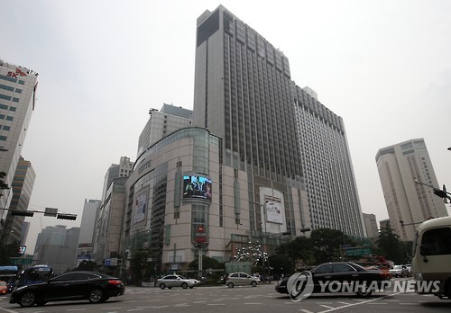 △ '롯데그룹 위기상황 돌파할 수 있을까?' (서울=연합뉴스) 한종찬 기자 = 경영권을 두고 형제간·부자간 분쟁을 이어가던 신동빈 롯데그룹 회장이 11일 대국민사과를 통해 다시 한번 깊이 고개를 숙였다. 신 회장은 이날 기자회견에서 한·일 롯데 경영권 분쟁과 관련해 국민에게 사과하고 한국 롯데 지주사 호텔롯데의 상장, 순환 출자고리 1년내 80% 해소 등 지배구조 개선 계획 등을 밝혔다. 사진은 이날 오후 서울 중구 롯데그룹 본사와 호텔. 2015.8.11 saba@yna.co.kr