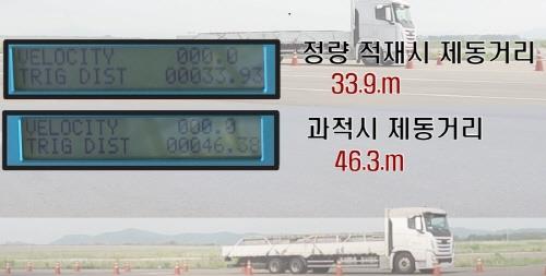 과적을 하면 화물차 제동거리 안전기준인 36.7m를 넘어선다는 것이다.