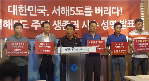 서해5도 중국어선 불법조업 대책위원회는 12일 인천시청에서 열린 기자회견에서 "중국어선의 싹쓸이 조업에 대한 피해 구제를 요청해 왔지만 정부는 다른 지역과의 형평에 어긋난다며 지원을 미루고 있다"고 주장했다.