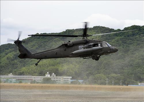 △ 12일 추락사고가 난 헬기 기종인 'UH60' (교도.연합뉴스.자료사진)