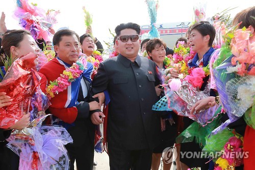 △ 북한 김정은, 동아시안컵 우승 여자축구선수들 공항까지 마중 2015.8.11