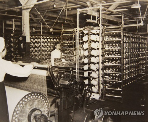| △ 해방공간의 일상 (서울=연합뉴스) 1948년 3월 24일 서울근교에 있는 경성방직 방적공장의 정경기(整經機). 원면에서 옷감을 만들기 위한 여러 단계 중 하나이다. 한국인 여성 노동자가 정경기 앞에서 기계가 돌아가는 것을 지켜보고 있다. 국사편찬위원회는 광복 70년을 맞아 미국 국립문서기록관리청(NARA)에서 발굴한 사진 자료 70장을 공개한다고 밝혔다. << 국사편찬위원회 제공 >> |