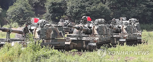| △ 지난해 열린 한미연합훈련인 을지프리덤가디언(UFG) 연습에서 K-9 자주포가 줄지어 서있는 모습 (연합뉴스 자료사진) |