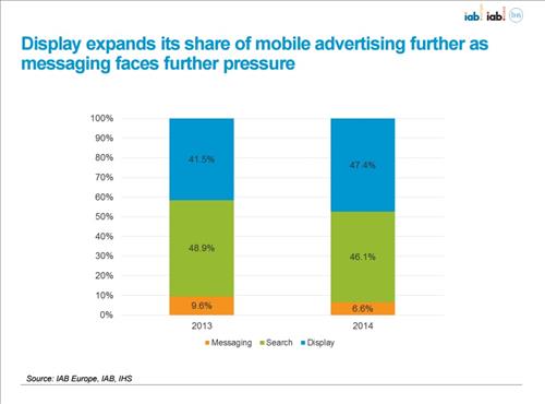 디스플레이 광고 매출은 전체 모바일 광고 매출의 47.4%에 해당하는 151억달러를 기록, 147억달러(46.1%)의 매출을 올린 검색 광고를 앞질렀다.
