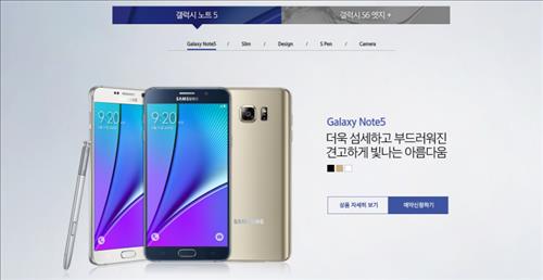 17일 삼성전자 온라인 상점인 삼성스토어(store.samsung.com)에 따르면 삼성전자는 이날부터 19일까지 갤럭시노트5와 갤럭시S6엣지+ 예약구매 신청을 받는다.
