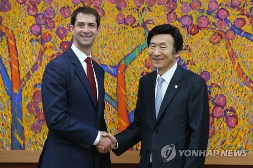 윤 장관은 동아시아 방문 차 한국을 찾은 톰 코튼 미국 상원의원(아칸소)을 이날 오후 외교부 청사에서 만난 자리에서 "이는 북한의 끔찍하고 의도적인 도발"이라며 이같이 말했다.