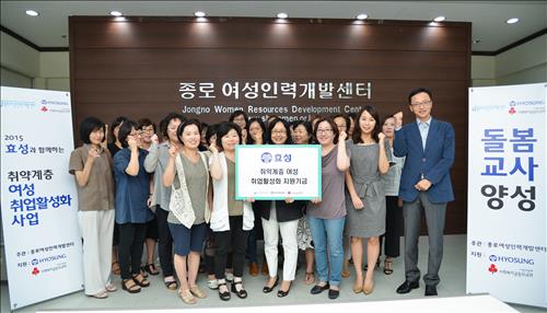 효성은 2013년부터 3년째 종로여성인력개발센터와 함께 여성가장, 기초생활 수급대상자, 탈북민, 결혼이민자 등 취약계층 여성이 체계적 직업훈련을 받고 성공적으로 사회에 진출하도록 돕는 사업을 벌이고 있다.