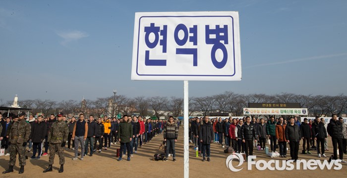 (논산=포커스뉴스) 4일 오후 충남 논산 육군훈련소 입영심사대에서 입영장병들이 도열해 있다.
